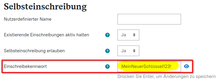 Bitte beachten Sie, dass für Einschreibeschlüssel analog zu Ihrem Anmeldepasswort bestimmte Richtlinien hinsichtlich der Komplexität gelten.